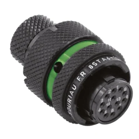 Souriau 8STA Series, Size 10 Plug Connectors. Souriau 8STA series, size 10 plug connectors are derived from MIL-DTL-38999 specifications and developed primarily for the motorsport market, durable, lightweight plug connectors with a superb tolerance to vibration, impact and harsh environments. These Souriau 8STA motorsport connectors are small and light weight circular plug connectors suitable for Formula 1, Moto GP, WRC, Nascar, kart racing, boat racing and many other motorsports and also many other applications that require a robust circular connector such as military, including UAV, ground vehicles and Infantry interconnections where size and weight are an important design consideration. Souriau 8STA series circular plug connectors size 10 feature a colour coded banding system for easy identification and mate in 1/3 of a turn with an audible click, these motorsport developed 8STA connectors are available with male or female gender contacts in multiple contact layout versions. Shock resistance 300g for 3ms and EIA-364-27 Vibration 147m/s ;sup>2 ;/sup>, 10 to 2000Hz 100% scoop proof EMI-RFI Shielding Quick mating bayonet lock,1/3 turn Compact, lightweight design with colour indicator Body: Aluminium alloy, conductive black zinc plated IP67 rated (1 metre for 30 mins. minimum) Grommet and seal, liquid silicone rubber Gold plated copper alloy contacts. Supplied complete with contacts and extraction tool
