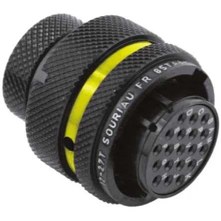 Souriau 8STA Series, Size 14 Plug Connectors. Souriau 8STA series, size 14 plug connectors are derived from MIL-DTL-38999 specifications and developed primarily for the motorsport market, durable, lightweight plug connectors with a superb tolerance to vibration, impact and harsh environments. These Souriau 8STA motorsport connectors are small and light weight circular plug connectors suitable for Formula 1, Moto GP, WRC, Nascar, kart racing, boat racing and many other motorsports and also many other applications that require a robust circular connector such as military, including UAV, ground vehicles and Infantry interconnections where size and weight are an important design consideration. Souriau 8STA series circular plug connectors size 14 feature a colour coded banding system for easy identification and mate in 1/3 of a turn with an audible click, these motorsport developed 8STA connectors are available with male or female gender contacts in multiple contact layout versions. Shock resistance 300g for 3ms and EIA-364-27 Vibration 147m/s ;sup>2 ;/sup>, 10 to 2000Hz 100% scoop proof EMI-RFI Shielding Quick mating bayonet lock,1/3 turn Compact, lightweight design with colour indicator Body: Aluminium alloy, conductive black zinc plated IP67 rated (1 metre for 30 mins. minimum) Grommet and seal, liquid silicone rubber Gold plated copper alloy contacts. Supplied complete with contacts and extraction tool