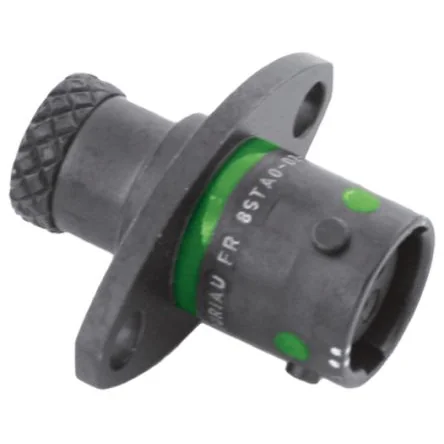 Souriau 8STA Series, Size 2 Oval Flange Receptacle Connectors. Souriau 8STA series, size 2 oval flange circular receptacle connectors are derived from MIL-DTL-38999 specifications and developed primarily for the motorsport connector market, durable, lightweight receptacle connectors with a superb tolerance to vibration, impact and harsh environments. These Souriau 8STA motorsport connectors are small and light weight circular receptacle connectors suitable for Formula 1, Moto GP, WRC, Nascar, kart racing, boat racing and many other motorsports and also many other applications that require a robust circular connector such as military, including UAV, ground vehicles and Infantry interconnections where size and weight are an important design consideration. Souriau 8STA series oval flange circular receptacle connectors size 2 feature a colour coded banding system for easy identification and mate in 1/3 of a turn with an audible click, these motorsport developed 8STA connectors are available with male or female gender contacts in multiple contact layout versions. Shock resistance 300g for 3ms and EIA-364-27 Vibration 147m/s ;sup>2 ;/sup>, 10 to 2000Hz Quick mating bayonet lock,1/3 turn ultra compact, lightweight design with colour indicator Aluminium alloy, conductive black zinc IP67 rated (1 metre for 30 mins. minimum) Grommet and seal, liquid silicone rubber Gold plated copper alloy contacts. Supplied complete with contacts and extraction tool