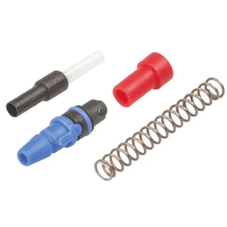 Souriau 8D Series ELIO Optical Contacts. A range of Souriau ELIO robust spring loaded butt joint optical contacts for use within the ELIO range of 38999 connectors, contacts are hermaphroditic an as such are used in both plug and receptacle connectors. These ELIO contacts feature a bayonet locking system which elimiinates the need for assembly tooling, compatible with single and multimode cables and featuring a boot grommet for rear sealing and protection of the cable against excessive bending once assembled. These ELIO optical contacts can endure over 500 mating and unmating operations are are resistant to high levels of both shock and vibration.