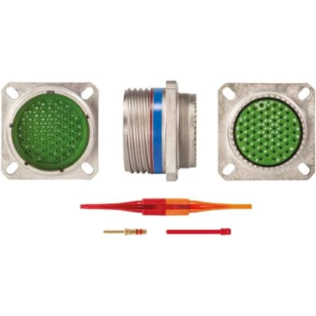Souria 8D Series EN3645 Square Flange Receptacle Connector,Composite,Threaded. Souriau 8D EN3645 series square flange receptacle connectors are lightweight, composite bodied, nickel plated, durable connectors designed for use within military and civil aerospace, marine and offshore equipment, medical instrumentation, defense and military ground personnel and industrial connector applications. These Mil Spec square flange receptacle connectors feature a threaded coupling are 100% scoop proof and offer RFI-EMi protection and shell to shell continuity when mated. Souriau 8D EN3645 series military spec receptacle connectors have very high resistance to harsh environmental factors such as shock (300g, 3ms) and temperature extremes and offer over 500 mating and unmating operations, these receptacle connectors have been designed to conform to MIL-DTL-38999 standard. High Contact Density 100% scoop proof Male connector contacts