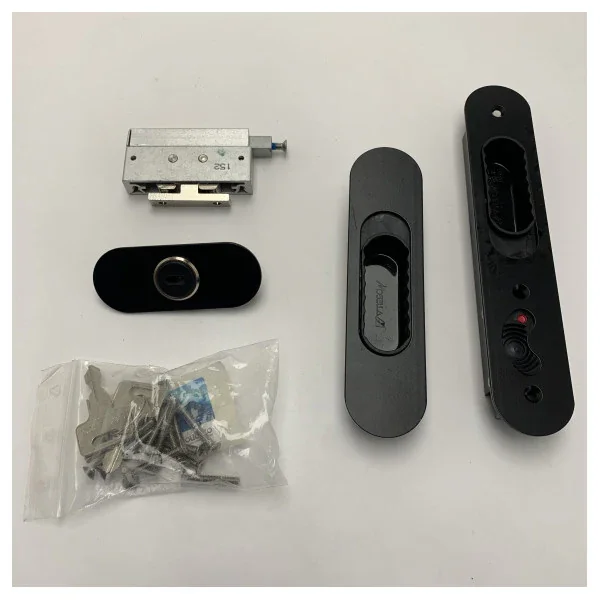 - Includes: Handles, locking mechanism, and cylinder lock with keys