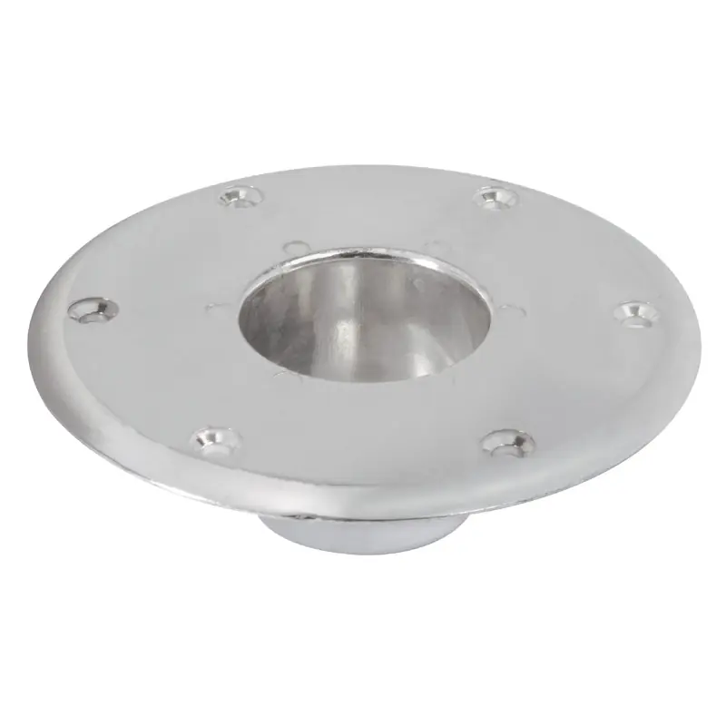 Durable polished anodized aluminium support designed for yacht table pedestals.