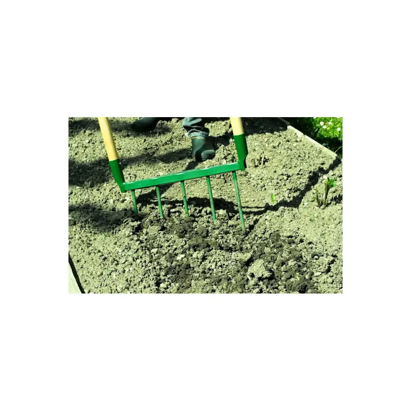 - Its five prongs are significantly wider than a spade, allowing for faster work