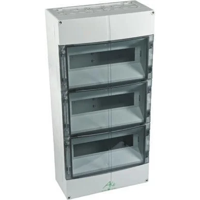 AKe IP55 Distribution Units. Mini distribution boxes with PE/N terminals IP55 Rating Hinged transparent front covers With cover and marker strips, insulating seals and entry spouts