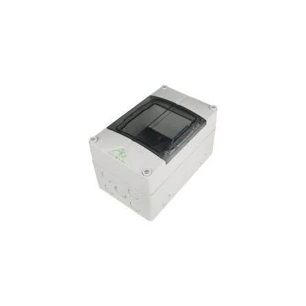 Compact IP55 mini distribution unit with transparent front cover for easy access.