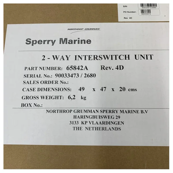 The Sperry Marine 65842A 2-Way Interswitch Radar Unit is a crucial component for the reliability and flexibility of your maritime navigation system. This Interswitch Unit is specifically designed to manage the seamless exchange of radar signals between multiple displays and radar transmitters (transceivers) on your ship, which is essential for safety and redundancy at sea.