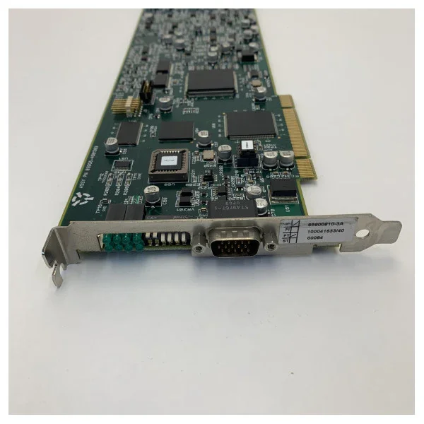This high-quality PCB Assy-PCI Scan Converter is an essential component for maritime communication systems and navigation equipment. The circuit board design features advanced integrated circuits, including various microchips and capacitors, which ensure optimal signal conversion and reliable data signal processing on board. The card is equipped with a standard PCI connector and an external DAVINCI connector, guaranteeing compatibility with various maritime electronic systems. Thanks to the robust design and the blue handle on the side, this component is easy to install and remove, facilitating maintenance and replacement. This product comes in protective packaging with clear product and stock labels, including item number 40004790 and FZ000399, and is ideal for ships that require reliable and efficient electronic communication.