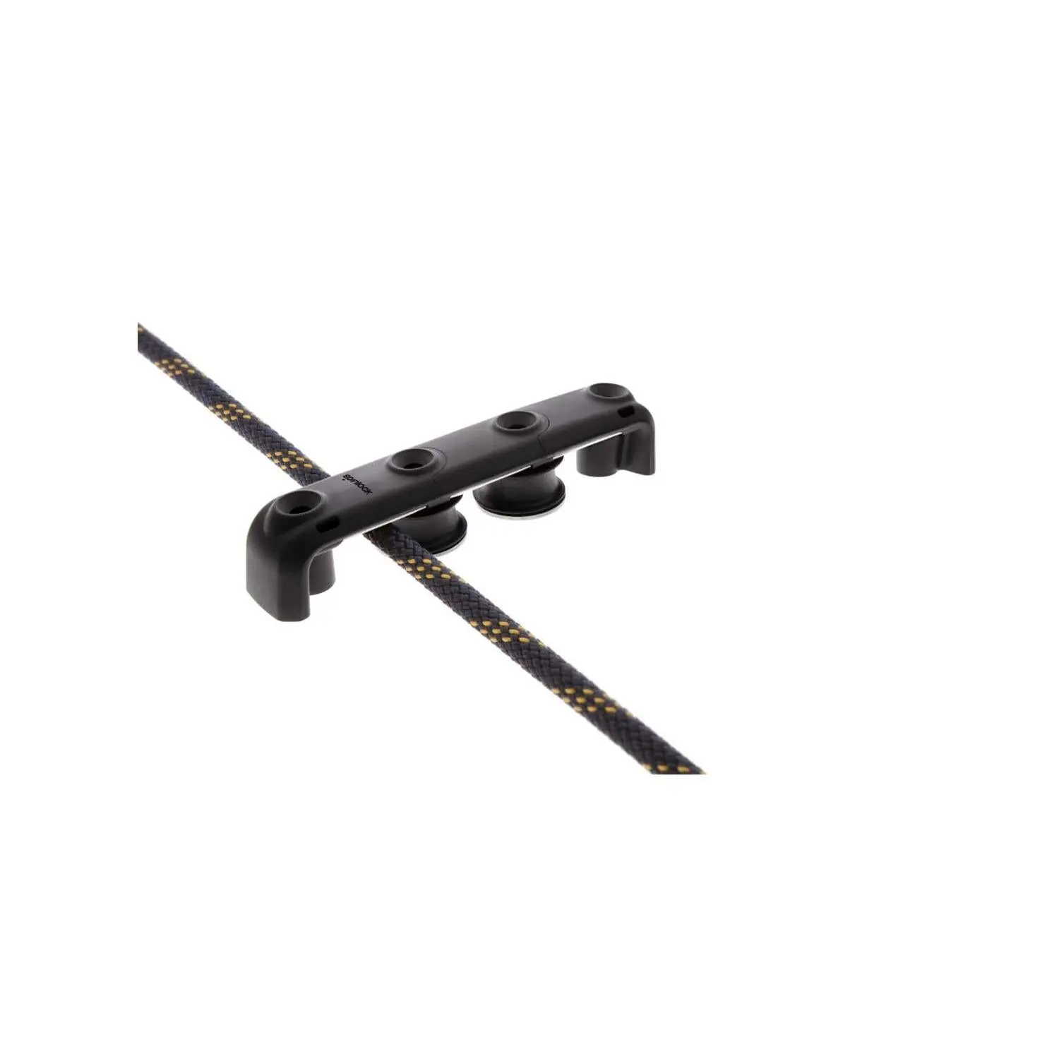 The T25 2-Sheave Deck Organizer is compatible with lines up to 10mm in diameter and is suitable for small boats up to 28 feet in length. It can be configured in both symmetric and asymmetric setups, providing flexibility for various rigging configurations. For a stacked line solution, it can be combined with the BE10/2 or BE10/3 organizers.