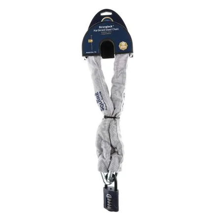 Spare padlock CP50 - RS ; 679-5748 679-5748. Squire Lock and Chain Set. The Squire Y chain is made from hardened steel and with a 10mm chain link diameter it offers high security whilst being lighter to carry and offering excellent value for money. When partnered with the Squire CP50 it offers the convenience of no keys to lose. 10,000 possible combinations Hardened Steel 8mm diameter shackle Highly resistant to corrosion, excellent weather protection Recodable - you choose your own code 915mm length, 10mm diameter chain Hardened Steel Chain. Storage areas, vehicles, motorcycles, site and plant equipment. Recommended For: