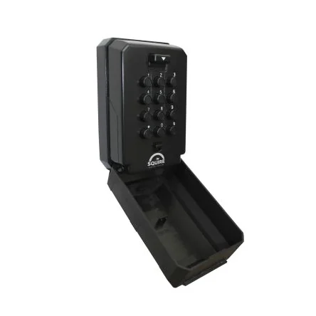 Squire Key SafeThe Squire combination key safe has a keypad with 12 buttons. The keypad provides as many as possible 4000 combinations. This key safe attaches easily to any flat surface, comes with four fixing bolts. The combination code can be reset at any time as per your convenience. The lock is ideal for both, indoor and outdoor use.Features and BenefitsWeatherproof protective cover Easy to mount Push-button operation Supplied with security fixings Durable die-cast construction designed to withstand an attack Easy to recode Discrete appearance, dark colour does not attract attention Automatic reset feature for extra securityApplicationsRetail stores Garages Security cabinsCertificationsANSI/ESD S20.20:2014 BS EN 61340-5-1:2007