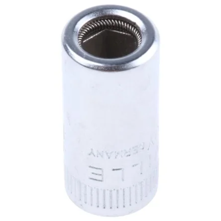 Type E, DIN 3126/ ISO 1173. Square Drive Bit Holders. Square drive to inside hex bit holders with collar thrust spring. Bits are easy to insert and remove and lock securely in place, including hex bits with a wide groove.