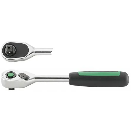 DIN 3122 / ISO 3315. Stahlwille 3/8in Reversible Ratchet with Quick Release – 435QRN. STAHLWILLE 3/8 in ratchet with forward and reverse direction, complete with quick release mechanism and 2 component handle. For use in confined spaces and with 3/8 in sockets and accessories. Re-engages after movement of 4.5°, construction without screws prevents foreign object damage. Features and Benefits. Quick release. Fine tooth. Reversible action. 80 teeth