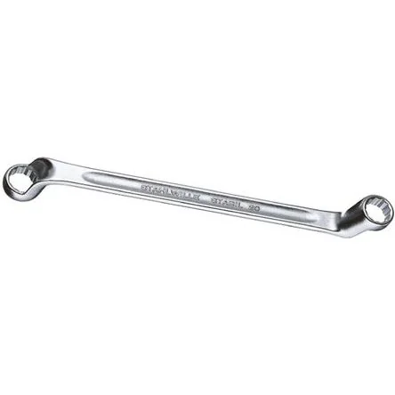 DIN 838; ISO 10104. Offset Double Ring Spanner (20 Series). Offset double ring spanners with double "T" profile for added strength and reliablity that have been specifically designed to withstand greater loads then the screws they are used for. Manufactured from Chrome Alloy Steel for higher durability and strength Drop forged construction Chrome plated finish Compact design for working in awkward and confined areas.