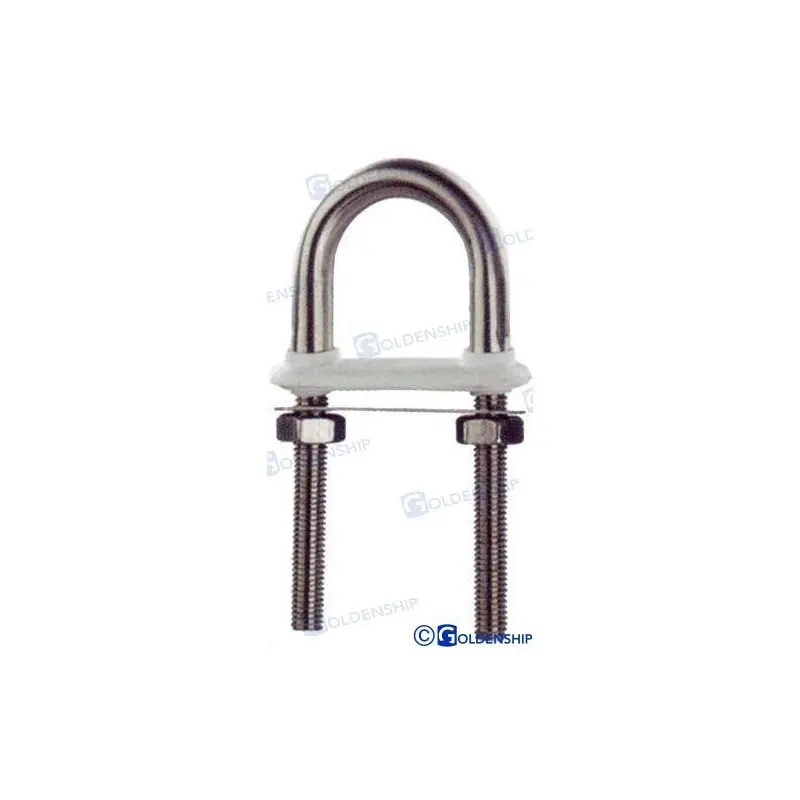 Two bolt coupling. Soft PVC external gasket, white in colour, that acts as a sealing joint. Made of stainless steel.