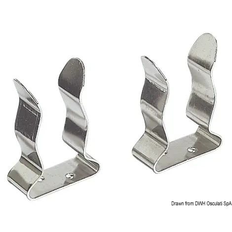 Durable stainless steel clips for securing gaffs and fishing rods, sold in pairs.