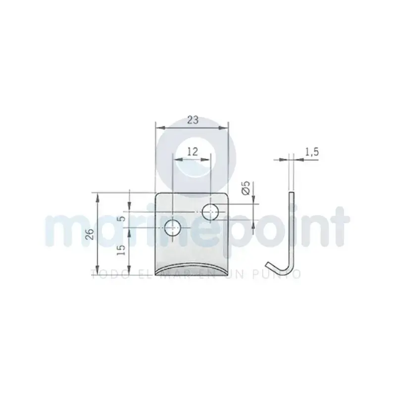 Reliable solution for repairs and maintenance of onboard closure elements. This stainless steel hook is designed to be compatible with closure models 121031 and 121032, offering maximum robustness against the marine environment.