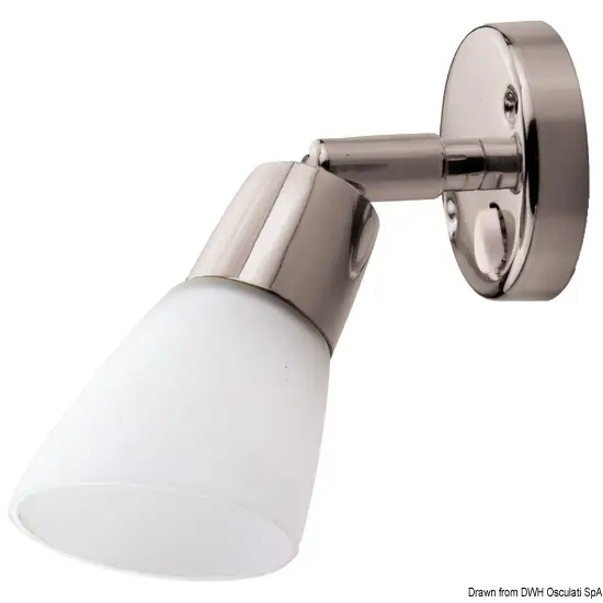 Durable stainless steel LED spotlight with opal glass, offering 159 lumens and a polished mirror finish.