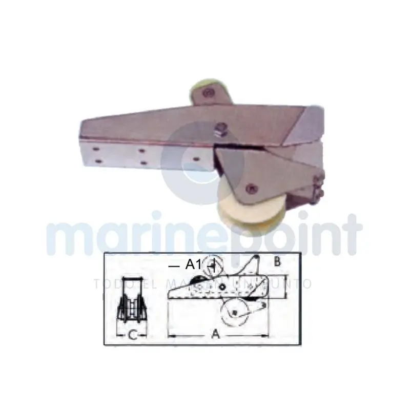 Hinged stainless steel swivel pulley designed for durability and versatility.