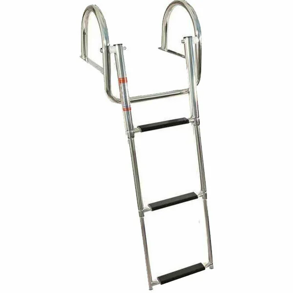 Stainless steel telescopic ladders with handrail.