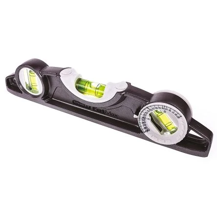Stanley FatMax® XL Torpedo Spirit Level. The Stanley 43-609 is part of the FATMAX® range, this Torpedo spirit level is invaluable for precision levelling measurement in a multitude of jobs, from something as simple as putting a shelf up to checking how level bricks are in a new wall. Measuring only 250 mm this handheld level is easy to use and a simple way to maintain accuracy on the job. Magnified centre vail indicate when the bubble is centred showing the user that it is level. This FATMAX level has a 180-degree rotating vial, which can be easily adjusted to level variable angles. An issue some professionals find is levelling pipework to keep it level and to keep it neat, this level incorporates a pipe groove for uses on rounded surfaces. Earth magnets enable the 43-609 to stay connected to the subject to allow handsfree working, coupled with the magnified centre bubble makes it clear to see. Stanley has been making quality, reliable and innovative tools, they maintain what is important to the professional and what you should expect. Stanley offers a lifetime warranty with this product, which shows the confidence they have in this spirit level. Features and Benefits. Constructed from a tough die-cast Aluminium body Provides best in class accuracy with 0.5mm/M Three levelling vails, including a 180-degree rotating vial to duplicate angles Magnified centre vial for improved visibility Pipe groove through the level for use on rounded surfaces Integrated magnets for hands-free holding power. Typical Applications. Spirit Levels ; Inclinometers are tools designed for precision levelling measurement in a multitude of jobs, from something as simple as putting a shelf up to checking how level bricks are in a new wall. They are commonly used by:. Carpenters Stonemasons Bricklayers Surveyors DIY Enthusiasts. FAQ's. How accurate will the level be if dropped?. The level is extremely well built and robust, being constructed from Aluminium. So it can withstand a lot of day to day work without affecting the accuracy. Why so some spirit levels have more than one vail?. This tripe vial system means that the two vials on the level work on whether it is lying on either its top or bottom edges, with the third being used for duplicating angles.