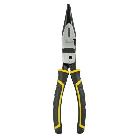 This 12-piece set of Stanley long nose pliers features flat tips and an 8in jaw length for versatile use.