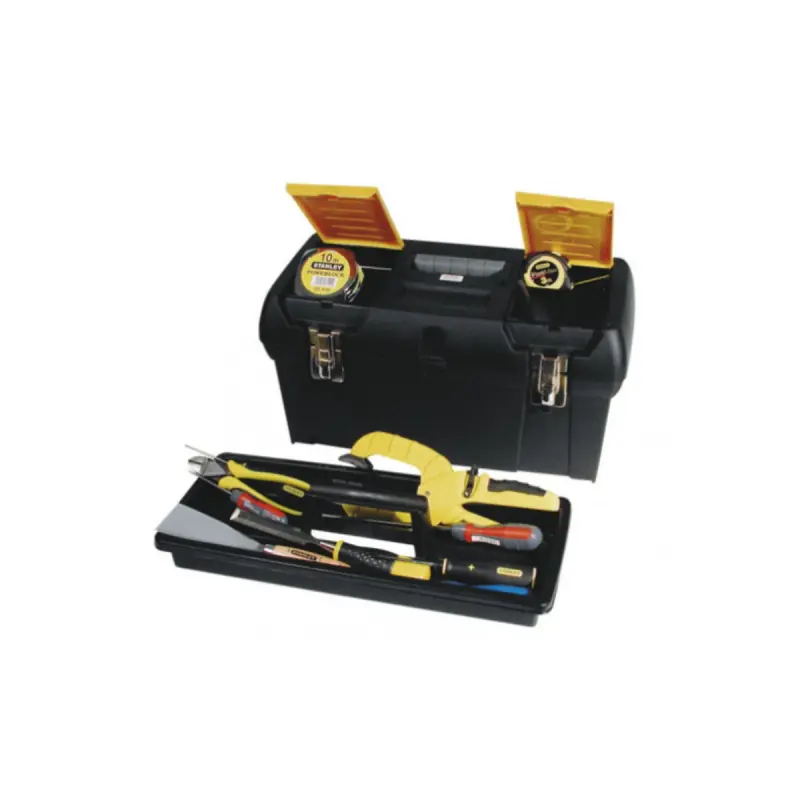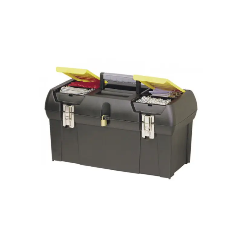 The Seriepro STANLEY Tool Box - 48cm is ideal for taking your tools with you when you travel or simply for storing them all in one place. In addition to hand tools, you can store screws in two small organisers placed on the lid.