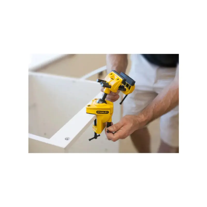 The STANLEY swivel bench vice features a swivelling head so you can adjust the angle according to your needs. Additionally, the jaw opening of 75 mm and a clamping force of 25 kg make the vice compatible with various objects up to 7 cm thick. You can even work on more delicate pieces as the jaws are covered in rubber.