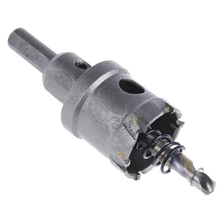 The Starrett carbide tipped deep cut hole saw is a perfect solution for repeated intense drilling in mild and stainless steel, cast iron, aluminium and copper of all thicknesses up to 25mm (1inch). Featuring three different angles ground on to the cutting face of each tooth on the saw. This 3-Ply tooth grind delivers a fast cut, minimal snag when the saw begins the cut, efficient swarf removal minimising heat build up and maximum saw life.3-Ply tooth grind on each tooth delivers maximum performance. Supplied as one piece with no need for assembly Ejector spring to aid ejection of the core from the saw.