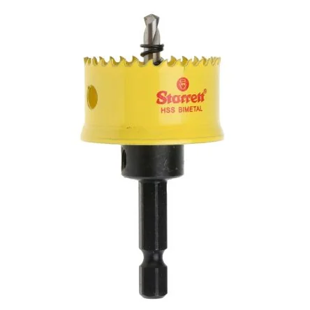 Starrett Smoothcut Bi-metal Hole Saws. Bi-metal holesaws for use with battery operated power tools with 1/4in. Hex drive. The constant pitch teeth means that these holesaws provide an exceptionally smooth cut. Ideal for cutting stainless steel, tool and mild steel sheeting plus plaster board, wood and thin plastics to a depth of 1/2in. Complete assembly, no need for separate arbor or pilot drill Hardened heat and abrasion resisting HSS teeth Constant pitch of 8 teeth per inch