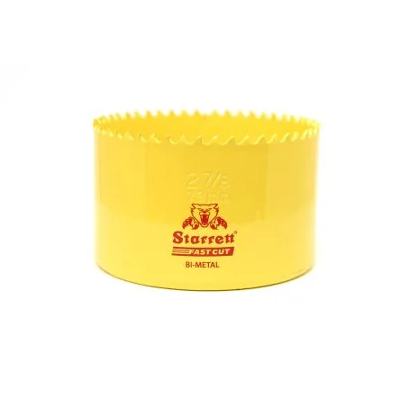 Starrett HSS 'Fast Cut' Bi-metal Hole Saws. Hardened cutting edge (6tpi alternate set) welded to a tough alloy steel body Bonded construction reduces possibility of shattering For use with cast iron, tool and stainless, steel, brass, bronze, aluminium, plastics and wood to a depth of 32mm 6.5mm arbor required for hole saw diameters 14 to 30mm and 9.5mm arbor for 32 to 152mm hole saw diameters Arbors, pilot drills and an ejector spring to aid core removal are also available; see Arbors ; Accessories range