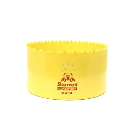 Starrett HSS 'Fast Cut' Bi-metal Hole Saws. Hardened cutting edge (6tpi alternate set) welded to a tough alloy steel body Bonded construction reduces possibility of shattering For use with cast iron, tool and stainless, steel, brass, bronze, aluminium, plastics and wood to a depth of 32mm 6.5mm arbor required for hole saw diameters 14 to 30mm and 9.5mm arbor for 32 to 152mm hole saw diameters Arbors, pilot drills and an ejector spring to aid core removal are also available; see Arbors ; Accessories range