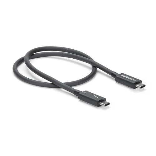 Provide four times the data transfer speed of any other cable type, enable dual 4K 60Hz video, and power your devices with a single cableThis Thunderbolt™ 3 (40Gbps) cable lets you connect to any Thunderbolt 3 port (USB-C™) to deliver video and data to your Thunderbolt, USB and DisplayPort devices. Plus, the cable can provide power for charging your devices, and you can link up to six Thunderbolt 3 devices as part of a daisy-chained connection.Faster data transfers when connected to Thunderbolt devicesThis cable supports data transfer rates of 40Gbps when connected to a Thunderbolt 3 device, so you can transfer photo and video files at four times the speed of a USB 3.1 Gen 2 (10Gbps) cable. For example, you can transfer a 4K movie in seconds. When connected to a USB 3.1 device, the cable supports data transfer rates of 10Gbps.USB-C compatibleThe Thunderbolt 3 cable is fully compatible with all of your USB 3.1 Gen 2 devices and can be used for charging and syncing your mobile devices. You can also connect and power USB-C laptops, such as your MacBook or Chromebook™, and USB-C peripherals, such as your portable hard drive and docking station.Full 4K videoThe cable supports full 4K 60Hz or 5K 60Hz video. The cable also supports DisplayPort 1.2 and is compatible with existing DisplayPort displays. It's perfect for connecting your docking station or laptop to a monitor with astonishing resolution, contrast, and color depth for amazing detail.Versatile power deliveryThis Thunderbolt 3 cable delivers up to 100W of power for charging a laptop or powering a display, and 15W for bus-powered devices such as a hard drive enclosure.Thunderbolt networkingThe cable gives you an easy way to bridge multiple Thunderbolt 3 enabled laptops for peer-to-peer 10GbE networking. It’s perfect for setting up small workgroups and sharing peripherals such as printers and storage. You can also connect two Thunderbolt 3 laptops together for PC migrations.The TBLT34MM50CM is backed by a 2-year warranty.The StarTech.com Advantage