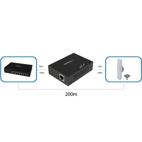 This Gigabit PoE+ extender spans your Power over Ethernet (PoE) device over longer distances, letting you double the 100m limitations of a traditional PoE infrastructure.Now you can connect your Gigabit PoE device up to a maximum of 200m away, so it’s easy to install a remote IP camera or access point. Plus the extender can be daisy-chained for more scalability.Unrestricted PoE+ range and convenienceNeed more distance? This convenient PoE+ repeater maximizes range and flexibility by extending your PoE connection by an extra 100m (330ft), while providing 24-watt power output to compatible devices.Simply connect the extender to your power sourcing equipment (PSE) and your PoE-powered device (PD) and you’re all set. The extender is compliant with the 802.3at/af standard, so it will work with existing PSE, such as a StarTech.com PoE+ injector (POEINJ1G) or PoE+ switch (IES81000POE).Daisy chain for longer distance and flexibilityStill need more distance? If an extra 100m isn’t enough, this full-featured PoE extender offers daisy chain capability.You can easily connect four extenders together, letting you install your PoE+ PD up to 500m (1640ft) away. It’s perfect for business, education, and retail environments (output wattage is dependent on the number of daisy-chained extenders used).Convenient installation options and durable constructionGet up and running quickly. This Gigabit PoE+ extender can be positioned right where you need it, with a wall-mountable design that requires no external power adapter.You can enjoy reliable performance with little worry of downtime or failure, the extender features a rugged metal housing with built-in ESD and surge protection.The POEEXT1GAT is backed by a StarTech.com 2-year warranty and free lifetime technical support.