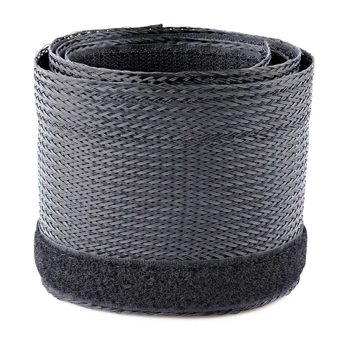 Flexible cable management sleeve for organizing and concealing cables, easily trimmable to fit any space.