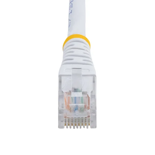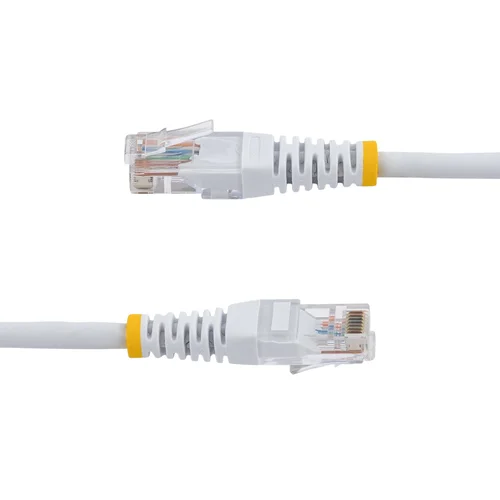 Make Fast Ethernet network connections using this high quality Cat5e Cable, with Power-over-Ethernet capabilityThe M45PAT15MWH Cat5e Patch Cable (15m) meets or exceeds all Cat 5e specifications to ensure reliable Ethernet network connections, and features a durable white PVC jacket that enables you to color code your network cable runs as needed.To ensure long-lasting performance, this high quality Cat5e patch cable features molded PVC strain relief that prevents the RJ45 connector termination points from bending at sharp angles - reducing the risk of cable damage, which could decrease network performance.Constructed of only top quality materials, this Cat5e Patch Cord delivers reliable performance and is backed by our Lifetime Warranty. 100% Copper - a better valueStarTech.com Cat5e cables are manufactured using high-quality copper conductors. While many cable manufacturers offer a "cheaper" cable, based on a copper-coated aluminum core, we make no compromises on quality to ensure you receive top value and performance for your network cable investment. 24 AWG WireThis Cat 5e cable is constructed with 24 gauge copper wire, to support a broad range of Ethernet applications such as Power over Ethernet (PoE). Because we use a high quality copper wire, our cables easily sustain the power required for Power over Ethernet applications, whereas the inferior quality offered by copper-coated aluminum cables may be subject to insufficient power delivery, heat buildup, equipment damage and potentially, fire.50-micron Gold ConnectorsThis molded patch cable offers high quality connectors comprised of 50-micron gold, to deliver optimum conductivity while eliminating signal loss due to oxidation or corrosion.The StarTech.com Advantage- 50-micron gold connectors ensure optimum conductivity while eliminating network signal loss due to oxidation or corrosion- Molded strain relief prevents the cable from being bent at sharp angles at the RJ45 connector, to minimize the stress at the plug termination point- Backed by StarTech.com lifetime warranty