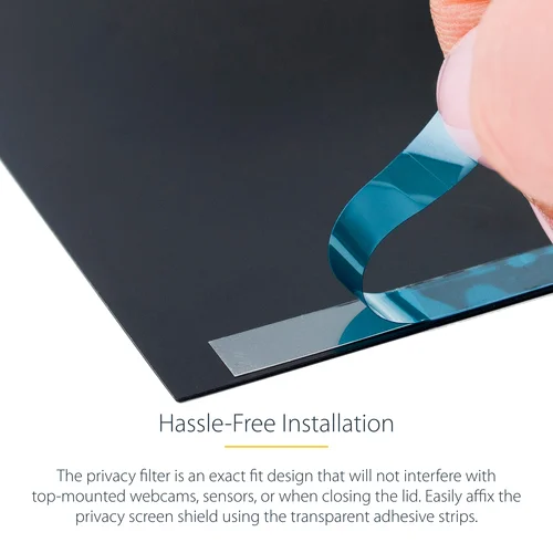 Prevent visual eavesdropping by limiting the viewing angle of your 16in MacBook Pro 21/23 screenThis Laptop Privacy Screen is compatible with the 2021 and 2023 16-inch MacBook Pro laptop computers. Gold Privacy Filters have a reflective surface that instantly transitions from a clear view to a mirror effect outside of the intended viewing angle, significantly improving visual privacy when working in an office or public environment.Prevent Visual EavesdroppingThe gold security filter is a convenient solution that features a quick shift to a mirror-like effect to protect confidential data from unwanted viewers while maintaining a clear view of 60 degrees (+/- 30 degrees from the center) for the user.Double-Sided FilterThe security screen protector features a glossy gold side for maximum privacy and an anti-glare matte side for environments prone to glare. The matte side provides additional screen protection with a scratch- and fingerprint-resistant coating.Hassle-free InstallationThe filter is an exact fit design that will not interfere with top-mounted webcams, sensors around the display, or when closing the lid. Affix the privacy screen shield using the included transparent and residue-free adhesive strips.Blue Light ReductionReduce eye strain and improve visual comfort with this blue light-reducing privacy shield. It blocks 40% - 51% of the blue light emitted from the display in the 380nm - 480nm wavelength range. Digital eye strain can lead to symptoms like headaches, dry eyes, and blurred vision.The StarTech.com Advantage