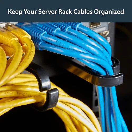 Organize and manage network, server and KVM cabling in your server rackThe CABLMANAGER2 1U Cable Management Panel mounts to a standard 19” 2 or 4-post rack to help you organize network, server or KVM cabling, using D-Ring hooks. This TAA compliant product adheres to the requirements of the US Federal Trade Agreements Act (TAA), allowing government GSA Schedule purchases.Constructed of high-quality steel, the cable organizer panel offers 5 removable ABS plastic D-Ring hooks, spaced 4in (105mm) apart for routing cables through your server rack and reducing cable strain. As an added benefit, the hook on either end of the panel can be turned 90° to accommodate horizontal or vertical rack cabling as needed.Adding a cable manager in between equipment also functions to close off open spaces in the rack, promoting proper airflow.Backed by a StarTech.com 2-year warranty.The StarTech.com Advantage