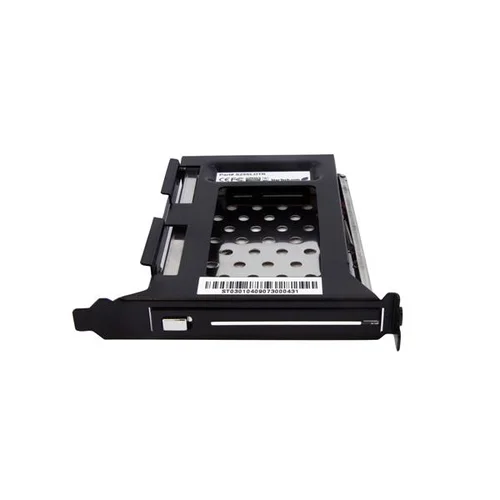 Use an available expansion card slot to install a hot swappable 2.5in hard driveThe S25SLOTR Trayless Hard Drive Rack can be installed into an available (full profile) PCI expansion card slot, providing easy access to a bare 2.5" SATA hard drive or solid state drive (SSD) from the rear panel of a computer case.Unlike conventional hard drive enclosures, the S25SLOTR hard drive rack doesn't require that a drive be installed in a drive tray, saving the time and hassle involved in having to mount or install the hard drive for access to drive contents.To maximize performance and utilize the full speed potential of your SATA III hard drives, this HDD Backplane supports SATA III for transfer speeds up to 6 Gbps when paired with a compatible controller.Once installed in a PCI slot (and accompanying rear panel bracket), installing a 2.5" SATA HDD is as simple as inserting it into the trayless rack. To remove the hard drive, simply hit the eject button to unlock the access door, allowing the drive to be pulled out of the computer without having to dismount the drive.* This unique design of the mobile rack enables you to use any available full profile expansion slot to mount a removable 2.5in SATA hard drive.The StarTech.com Advantage- Utilize a free expansion card slot to add a removable 2.5" SATA hard drive bay- Vented aluminum/steel design and a 50,000+ insertion rating ensures reliability of the drive and drive rack- Maximize performance, with file transfer speeds up to 6Gbps when paired with SATA III HDD and controller