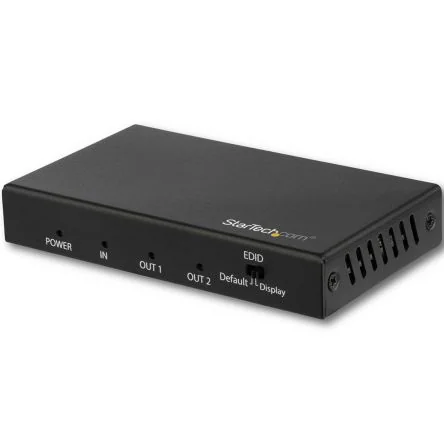 ST122HD202 HDMI Splitter This 2-Port 4K HDMI splitter connects your HDMI video source to two HDMI displays at the same time, without distorting or degrading your video signal. For dependable performance, the splitter features a durable metal housing that provides passive cooling. True 4K at 60Hz and HDR With transmission bandwidth up to 18Gbps, this HDMI splitter is fully compatible with your HDMI 2.0 equipment, supporting UHD resolutions up to 4096x2160 (4K) at 60Hz. For smooth video and color transitions, the splitter offers 4:4:4 chroma subsampling, so every pixel gets its own unique color. The splitter also supports High Dynamic Range (HDR) imaging, offering a greater luminosity than standard digital imaging. Widely Compatible The 2-way HDMI splitter supports HDCP 2.2 and is backward compatible with 4K 30Hz and 1080p displays. This ensures that it will work with almost any HDMI source, or destination device such as computers, Blu-ray players, monitors, TVs and projectors. Perfect for digital signage applications, where equipment may vary throughout your site. ST122HD202 is backed by a 2-year StarTech.com warranty and free lifetime technical support. Features & Benefits • Astonishing picture quality with support for 4K 60Hz and HDR • Wide device compatibility with support for HDCP 2.2, backward compatible with virtually any HDMI device • Hassle-free setup with support for EDID emulation and plug-and-play installation • 4:4:4 chroma subsampling even at 4K 60Hz with bandwidth up to 18Gbps • Support for 7.1 surround sound audio including Dolby® True HD and DTS HD Master Audio Applications • Distribute HDMI video to multiple displays in a conference room for presentations and meetings • Display the same digital signage on multiple displays in different areas of shopping centers, arenas, or healthcare facilities • Split the same image to multiple displays in storefronts What’s in the package? • HDMI splitter • universal power adapter • quick-start guide FAQs For hassle-free setup, the 1x2 HDMI splitter offers easy plug-and-play installation. The splitter also saves you setup time by automatically passing EDID between your video source and the display attached to port 1, ensuring settings like native resolution and refresh rate are configured properly.