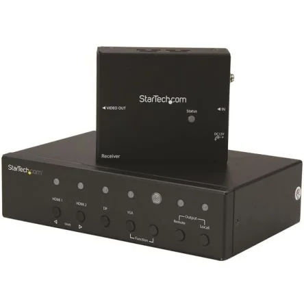 STDHVHDBT HDbaset Extender This multi-input video extender kit uses HDBaseT™ technology to extend your video signals up to 230 feet (70 meters) over a single CAT5e or CAT6 cable. It features a built-in video switch that enables you to choose which video source is outputted from four independent video sources (2 x HDMI, 1 x VGA and 1 x DisplayPort).The video extender supports Ultra HD 4K and Full HD 1080p video resolutions, with support for the accompanying digital 7.1 audio. Seamless multi-interface operation, with a switch and extender in one This HDBaseT extender features a built-in converter switch, so you can connect two HDMI sources as well as a VGA and a DisplayPort video source to the same remote HDMI display, without having to use additional adapters or scalers or a separate video switch. With support for multiple video sources and HDBaseT, this extender is the perfect solution for adding a large display to your boardroom or classroom, enabling BYOD laptops with HDMI, DisplayPort or VGA outputs to share their display with the room. Effortless control with automatic or priority switching The extender switch ensures hassle-free operation, with two different auto-switching modes: auto-detect switching, which detects and selects a newly connected device, or priority selection, which lets you choose which port should be activated by default for automatic switching. The multi-input video extender kit is perfect for digital signage applications, where an automatic switch can replace a failed source with a secondary input to avoid embarrassing video outages. Plus, the combined built-in HDBaseT functionality means you can connect a remote digital signage display with one kit that reduces failure points. Hassle-free integration with your existing infrastructure The kit extends your video signal over a single cable, unlike some video extender systems that require two cables and only offer minimal audio support. Extending your video with one cable reduces potential failure points and also lowers your cabling costs. Using standard CAT5e, CAT6 or CAT7 cables, the HDBaseT extender works with existing Ethernet infrastructure thats already built into large commercial buildings such as shopping centres, stadiums, schools, and hospitals, making it the perfect solution for deploying digital signage. Astonishing 4K picture quality from an impressive distance With high-quality HDMI cables beginning signal degradation at 30 feet, it can be difficult to maintain the brilliance of 4K video even at shorter distances. But with HDBaseT, you’ll be amazed at how your Ultra HD picture -- four times the resolution of high-definition 1080p, is just as brilliant even at distances up to 130 feet from your video source. Even if youre not running 4K, HDBaseT supports High-Definition 1080p and lower resolutions at even greater distances, up to 230 feet from your source, giving you peace of mind knowing that this extender will comfortably work with any HDMI video source and display. What is HDBaseT? HDBaseT is a zero-latency connectivity standard that’s revolutionizing HDMI distribution. HDBaseT uses an advanced method of modulation that enables you to distribute uncompressed HDMI audio and video, along with additional signals, over a single Ethernet cable. Offering greater versatility than traditional HDMI extenders and longer distances than HDMI cables alone, HDBaseT is the clear choice for every integrator and system designer, because it can do so much, with just a single cable. The STDHVHDBT is TAA compliant and backed by a StarTech.com 2-year warranty with free lifetime technical support. Features & Benefits • Tidy, professional installation with included mounting brackets • No software or drivers required with plug-and-play installation • Dolby® TrueHD, DTS-HD MA Audio • Save the hassle and expense of using multiple hardware devices, with a switch and extender in one device that accommodates VGA, DP and HDMI inputs • Maintain astonishing picture quality up to 130 feet away, with support for UltraHD 4K over non-proprietary CAT5e or CAT6 cabling • Supports HD video resolutions such as 1920x1200 or 1080p at distances up to 230 ft. (70 m) Applications • Use in your classroom or boardroom display, to enable presenters to connect a wide range of devices • Automatically switch between your set-top box or computer, for remote entertainment displays, in hospitality settings, such as restaurants, bars or hotels • Create brilliant digital signage displays in large commercial settings such as hospitals, shopping centres or stadiums What’s in the package? • Multi-input HDBaseT extender • HDBaseT receiver • IR remote control • Universal power adapter (NA, EU, UK, ANZ) • Mounting brackets • RJ11-to-RS232 converter • 5 ft [1.5m] RJ11 cable • 4 ft [1.2 m] RJ45 cable • Foot pads • Screw kit • Quick-start guide FAQs Does this video extender work with set-top boxes? Yes, this video extender works with set-top boxes, provided the set-top box meets the following requirements: The set-top box must be High-bandwidth Digital Content Protection (HDCP) compliant. The set-top box must support devices being connected between the video source and display. If the set-top box requires a direct cable connection between the video source and display, it wont work with this video extender.