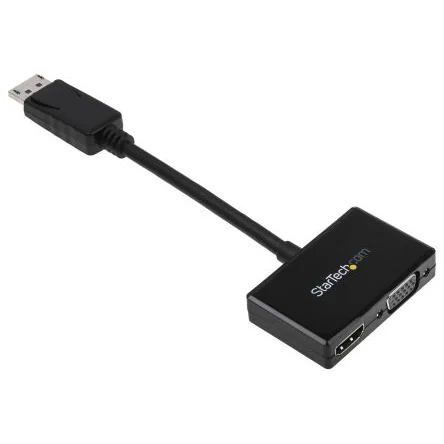 Connect your DisplayPort laptop to HDMI or VGA displays with this compact, portable adapter.