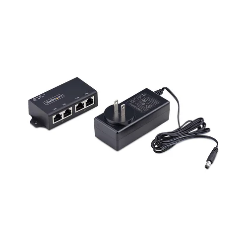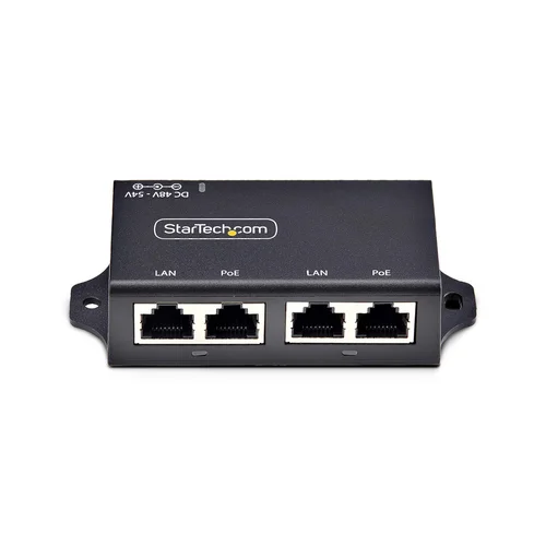 Supply power and data to two PoE devices over standard Ethernet cablingThis 2-port multi-speed PoE+ injector serves as Power Sourcing Equipment (PSE) and enables Ethernet speeds of 10/100/1000Mbps. This mid-span inline injector can transmit network data and power up to 328ft (100m) for two Powered Devices (PD).Versatile PoE InjectorDual-port PoE injector supports the IEEE 802.3af and IEEE 802.3at PSE standards and delivers up to 30W output (52V/0.580A). Connect a remote PoE device to a network at a location where there is no power source, but an Ethernet cable already exists. This includes access points, IP cameras, VoIP phone systems, IPTV and access controls. The flexible design allows for either desktop or surface-mount use.Streamlined Cable ManagementAll Ethernet cables can be routed from one side of the unit for efficient and organized cable management. The compact design (3.2x1x1.8in(82x25x46mm) ensures straightforward integration into existing network infrastructure, saving space and time during installation.The StarTech.com Advantage