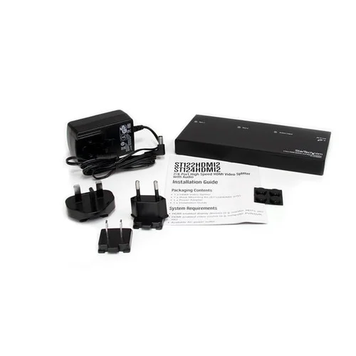 Split an HDMI® audio and video signal to two displays simultaneouslyThe ST122HDMI2 2-Port High Speed HDMI® Splitter and Signal Amplifier lets you share a single HDMI source signal with audio between two HDMI or DVI (using HDMI to DVI adapter - see Accessories) enabled displays simultaneously.Supporting True HD 1080p video resolutions, the HDMI splitter acts as a distribution amplifier that enables you to situate your HDMI-capable displays up to 50ft (15m) away from the splitter, and features 3.5mm audio connections, giving you the option of sending your accompanying audio signal through the HDMI cable, or through a separate channel.The HDMI splitter is easy to install and use with no software or configuration required, for a completely plug-and-play setup that can be used with HDMI output devices such as Blu-ray players or desktop/laptop computers.This product is TAA compliant and backed by a Startech.com 3-year warranty with free lifetime technical support.The StarTech.com Advantage