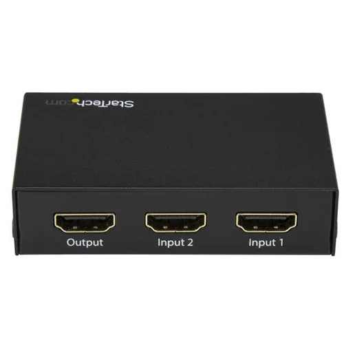This 2-port HDMI switch lets you share an HDMI 2.0 display or projector with two HDMI 2.0 video sources. The switch features two independent video inputs that can each support 4K resolution at 60Hz, making it the perfect solution for connecting two video sources to a display that has a limited number of HDMI 2.0 ports.Astonishing picture quality with support for Ultra HD 4K at 60HzThis HDMI switch lets you harness the High Dynamic Range (HDR) capability of your HDMI 2.0 video sources and deliver it to your UHD 4K60 display. Unlike many 4K switches that only support a 30Hz refresh rate, this switch works with HDMI 2.0 displays with output resolutions of up to 3840 x 2160p at 60Hz.Don't be fooled by a clever spin on old technology. Many HDMI switches support 4K but will only work at a 30Hz refresh rate, or claim support for 60Hz but heavily compress their signal to a lower 4:2:0 chroma subsampling in order to work at inferior bitrates. This 4K 60Hz HDMI switch uses the latest components to offer full support for your HDMI 2.0 equipment, supporting true 4K resolution at 60Hz with 4:4:4 chroma subsampling. Support for HDMI 2.0 devices means this switch can transmit bandwidth up to 18Gbps, making it an ideal video solution for high-resolution computer tasks.The HDCP 2.2 HDMI switch is backward compatible with 4K 30Hz and 1080p displays, which ensures that it will work with lower resolution displays such as TVs or projectors around your site or in your digital signage application.Hassle-free operation with automatic switchingThis switch ensures effortless operation with automatic switching that detects and selects a newly connected device, perfect for automatically switching to a 4K media player such as a 4K UHD Blu-rayâ„¢ player as soon as it's switched on. In your classroom or office boardroom, the automatic switch makes it easy to share your projector between multiple sources, which encourages on-the-fly collaboration among colleagues.The HDMI switch also supports manual operation, using the included IR remote control or the built-in front panel toggle switch.The VS221HD20 is backed by a 2-year StarTech.com warranty and free lifetime technical support.