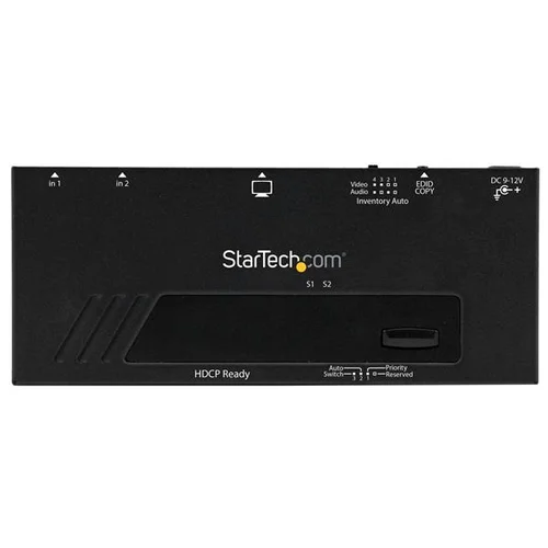 Discover hassle-free HDMI connection and automatic video port selection with high-definition picture qualitySave time and hassle by automatically switching between your HDMI audio/video sources, using the VS221HDQ 2-Port HDMI Auto Switcher. This easy-to-use HDMI switch ensures seamless transition while switching video sources, with EDID copy maintaining your video resolution.Seamless Signal SelectionEnsure seamless transition while switching video sources, with EDID copy maintaining native resolution with support for 1080p. Video connection emulation ensures the settings on any connected computers are not disrupted while switching to a different video source.Effortless ControlSave time by connecting two HDMI video source devices to your HDMI display instead of manually connecting individual cables. Mounting hardware is also included for a tidy, professional installation.Versatile Switching OptionsEnjoy hassle-free operation with three different switching modes:Automatic port selection: Enables your most recently activated video source to be displayed automatically.Priority port selection: Prioritizes input number two above input number one. If the video source connected to input number two is activated that source will be displayed.Manual port selection: Enables you to manually select your HDMI source with easy-to-use front panel buttons.The StarTech.com Advantage- Save your time, by conveniently accessing multiple HDMI source devices with a single HDMI display- Worry-free switching, with EDID copy video and connection emulation ensuring no signal loss- Hassle-free operation, with three video selection modes including automatic, priority, and manual