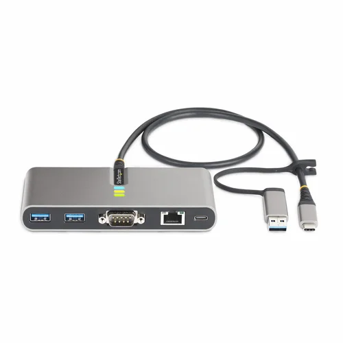 Add a unique combination of serial, USB and Ethernet ports to your laptop or PCThis USB Type-C Hub with RS-232 Serial, Gigabit Ethernet, and 100W USB-C Power Delivery Pass-Through adds two USB 3.2 Gen 1 (5Gbps) Type-A ports to a USB enabled computer. The attached 2ft (60cm) USB-C host cable includes a tethered USB-C to USB-A adapter that enables the USB Hub to easily connect to both USB-A and USB-C host computers.RS-232 SerialThe USB Hub adds an RS-232 serial DB/DE-9M (male) connector to a desktop or laptop. The USB to RS-232 adapter features COM retention, which automatically reassigns the COM port value if the cable is disconnected and reconnected, or if the system is rebooted.Gigabit EthernetThe USB hub features a Gigabit Ethernet Network Interface Controller (NIC). The Ethernet adapter is compatible with the IEEE 802.3u/ab standards and supports Wake-on-LAN (WoL), Jumbo Frames, and V-LAN Tagging. The network adapter enhances laptop network reliability, security, and performance, by utilizing wired 10/100/1000Mbps Ethernet.USB Power Delivery Pass-ThroughThis USB hub features 100W USB Power Delivery 3.0 pass-through (85W laptop charging). Connect a power source to the USB-C PD pass-through port to power the connected host device. PD 3.0 features Fast Role Swap (FRS) to prevent USB data disruption when switching power sources (USB-C power adapter to bus power).The USB hub features Overcurrent Protection (OCP) for added protection to the USB hub and any connected devices. OCP prevents faulty USB peripherals from drawing more power than is safely allocated.Plug and PlayThis device is compatible with most major operating systems, including Windows, macOS, and Linux. The Hub is automatically detected, configured, and installed upon connection to a host computer.Enhance Productivity and Device Management with the StarTech.com Connectivity Tools ApplicationDeveloped to improve performance and security, StarTech.com Connectivity Tools is the only software suite on the market that works with a wide range of IT connectivity accessories. The software suite includes:•USB Event Monitoring Utility: Track and log connected USB devices.•MAC Address Pass-Through Utility: Improve network security.•Wi-Fi Auto Switch Utility: Enable users to quickly access faster network speeds via wired LAN.For more information and to download the StarTech.com Connectivity Tools application, please visit: www.StarTech.com/connectivity-toolsThe StarTech.com Advantage