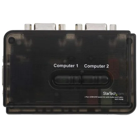 SV211KUSB 2 Port USB VGA KVM Switch The SV211KUSB 2 Port USB KVM Switch Kit with Audio and Cables lets you control two USB-enabled computers using a single keyboard, mouse and VGA monitor and offers both hotkey and top panel push-button operation for simple switching between connected computers. Designed to integrate seamlessly into any environment, the USB KVM switch offers a small footprint design (roughly the size of a deck of playing cards) and draws power from the connected computers, so it doesnt require an external power supply. A suitable solution for virtually any application, the USB KVM switch supports video resolutions of up to 2048 x 1536 as well as audio switching. The USB KVM switch includes two 4ft 2-in-1 VGA and USB Host Cables, providing everything needed for quick installation to provide a complete, out-of-the-box KVM solution. Delivering dependable and convenient control of multiple computers from a single peripheral station, the KVM switch is backed by a StarTech.com 2-year warranty and free lifetime technical support. Features & Benefits • Cables (4 ft.) included • Maximum resolution: 2048 x 1536 • Switching type: Hotkey, push-button • Includes audio support for a complete switching solution • Small footprint design • USB Powered - No external adapter required • Power-free operation – KVM draws power from attached computers and requires no power adapters • Compact, small footprint design fits easily into almost any environment saving desk space and reducing clutter • Included all-in-one KVM plus audio cables provide a complete out of the box KVM solution. Applications • Control 2 USB-enabled computers using a single keyboard, mouse, and VGA monitor • Applicable for call centres, help desks, education environments, home gamers, video editing, and PC enthusiasts • Great for PC test/burn-in computer control saving the desk space required for two monitors, keyboards and mice • Dual system control for single user workstations, increasing user productivity in the office What’s in the package? • 2 Port KVM Switch • 4ft. VGA USB KVM Cable • 4ft. Audio Cable (3.5mm speaker/mic) • Driver CD • Instruction Manual FAQs Can I use any mouse or keyboard with the KVM Switch? It will depend on the type of mouse or keyboard used. It is advised by the manufacturers to use standard wired104 key keyboards and a standard wired mouse that does not have additional features. This includes wireless, gaming and Apple keyboards.