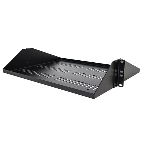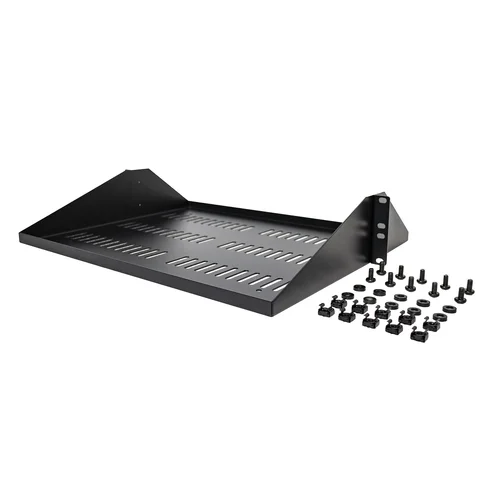 Add a sturdy, 2U server rack shelf to any 2 post rackThe SHELF-2U-14-CENTER-V lets you add 2U 14 inches (35.6 cm) deep shelf to any 2-post EIA-310 compliant 19-inch rack. The shelf is vented to improve airflow and help lower temperatures in your rack.Quality constructionThe centered rack shelf can hold up to 200 lbs (91 kg) of equipment and is constructed using 1/16 in (1.5 mm) thick SPCC commercial-grade cold-rolled steel for long-term durability and sturdiness. Accommodate your accessories or non-mountable devices for ease of access or connectivity to your equipment.Hardware includedConveniently includes M6 square cage nuts and M6 screws to set it up in no time.The SHELF-2U-14-CENTER-V is backed by a StarTech.com lifetime warranty and free lifetime technical supportThe StarTech.com Advantage