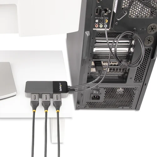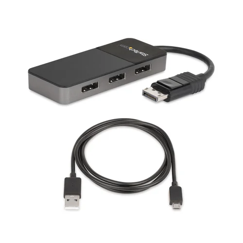 3 x 4K | Multi-Monitor Video Splitter | Windows® | HDRThis 3-port DisplayPort MST hub lets you create a high-performance workstation by connecting three DisplayPort monitors to your DisplayPort device, helping to increase and maximize your productivity. The multi-monitor splitter supports High Dynamic Range (HDR) and provides sharper images with enhanced video.Incredible Picture QualitySupporting four times the resolution of 4K, this DP 1.4 MST hub delivers the stunning quality of UHD at resolutions up to 7680×4320 at 30Hz on a single monitor and supports multi-monitor applications at lower resolutions and refresh rates, enabling a dynamic work environment whether you're in the office, at home or traveling.Display 1Display 2Display 38K (7680x4320) @ 30HzXX5K (5120x2880) @ 60Hz1080p (1920x1080) @ 30HzX4K (3840x2160) @ 60Hz4K (3840x2160) @ 30Hz4K (3840x2160) @ 30Hz2K (2560x1600) @ 60Hz2K (2560x1600) @ 60Hz2K (2560x1600) @ 60Hz1080p (1920x1080) @ 60Hz1080p (1920x1080) @ 60Hz1080p (1920x1080) @ 60HzBoth your source and destination must support DisplayPort 1.4 in order to achieve maximum resolution (8K 30Hz).Lower resolutions and refresh rates may also be supported.Multi-Tasking Made EasyThis DisplayPort to 3x DisplayPort MST hub enables you to connect three displays to your DP computer, making multi-tasking much easier. Using this multi-monitor video splitter, you can mirror your display onto multiple monitors, stream independent content to each display or extend your screen to create a video wall effect.Hassle-Free SetupMulti-stream transport offers an easy setup, by natively working on any Windows device. It offers plug-and-play installation with no drivers or software required. Additionally, the DisplayPort MST hub is bus-powered (with the included micro-USB cable), creating an ultra-portable solution for business and IT professionals.MST14DP123DP is backed by a StarTech.com 3-year warranty, and free lifetime technical support.The StarTech.com Advantage
